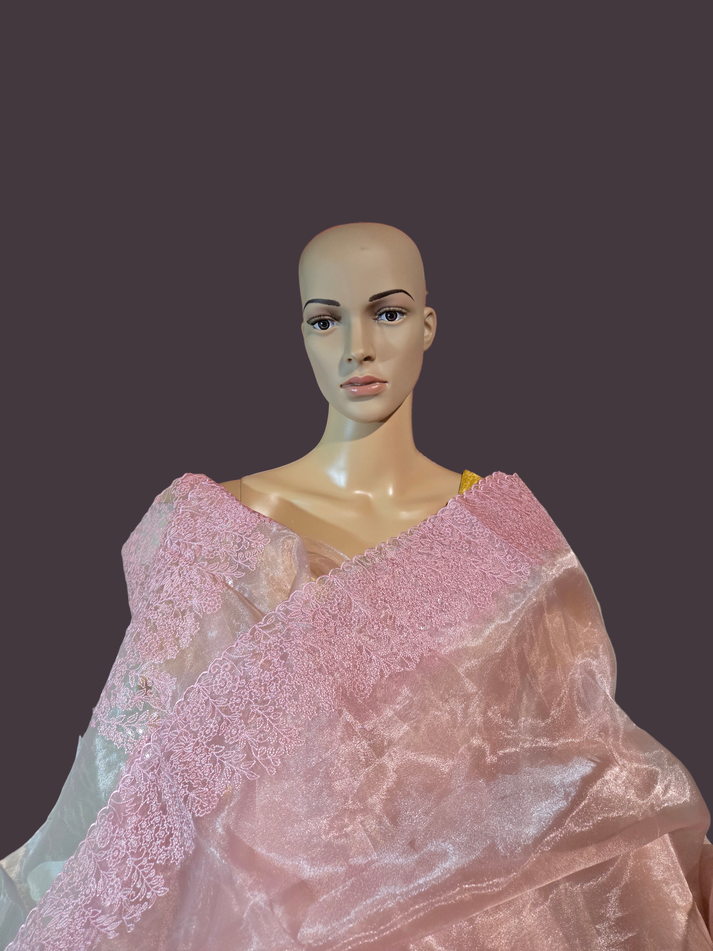 Exclusive Embroidered Pure Glass Organza Saree buy from USA with Threadwork Border & Matching Blouse – Lightweight & Elegant