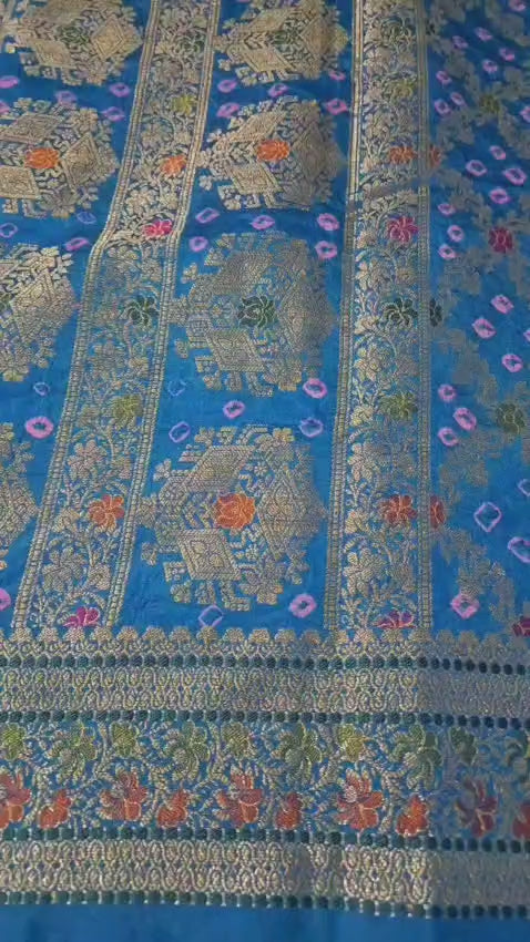 Celebrate heritage with this handcrafted Banarasi Bandhani silk saree, meticulously designed for weddings, festivals, and special occasions.