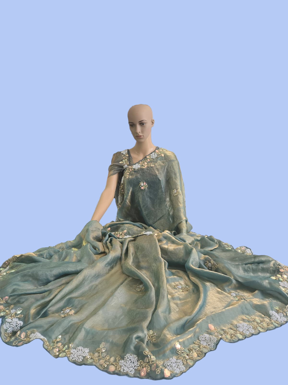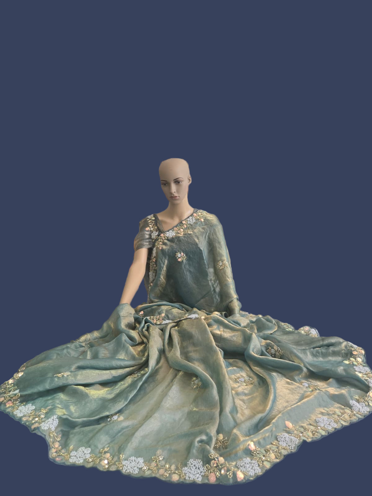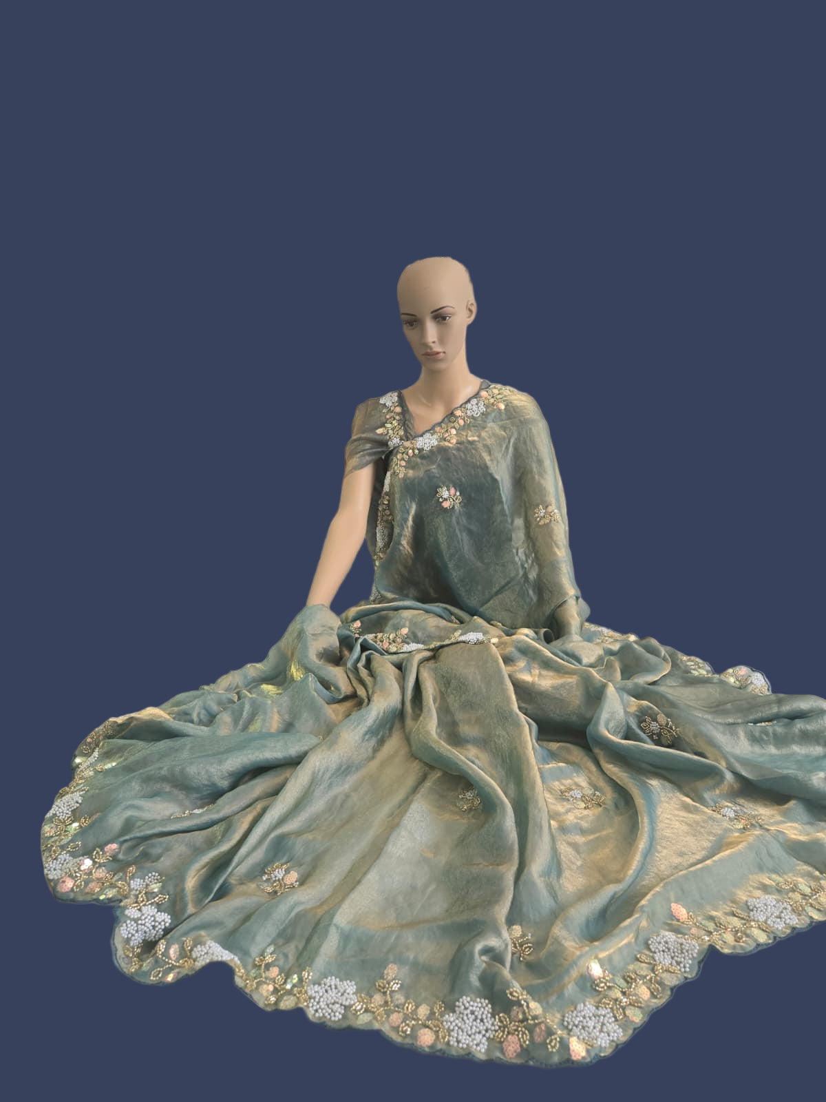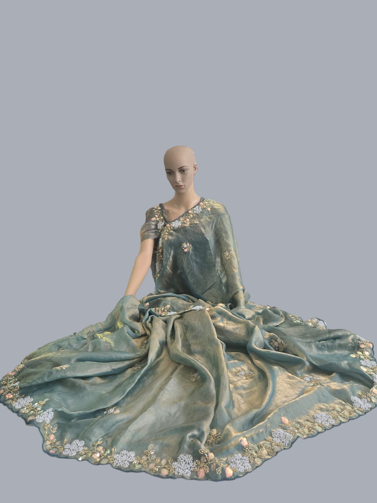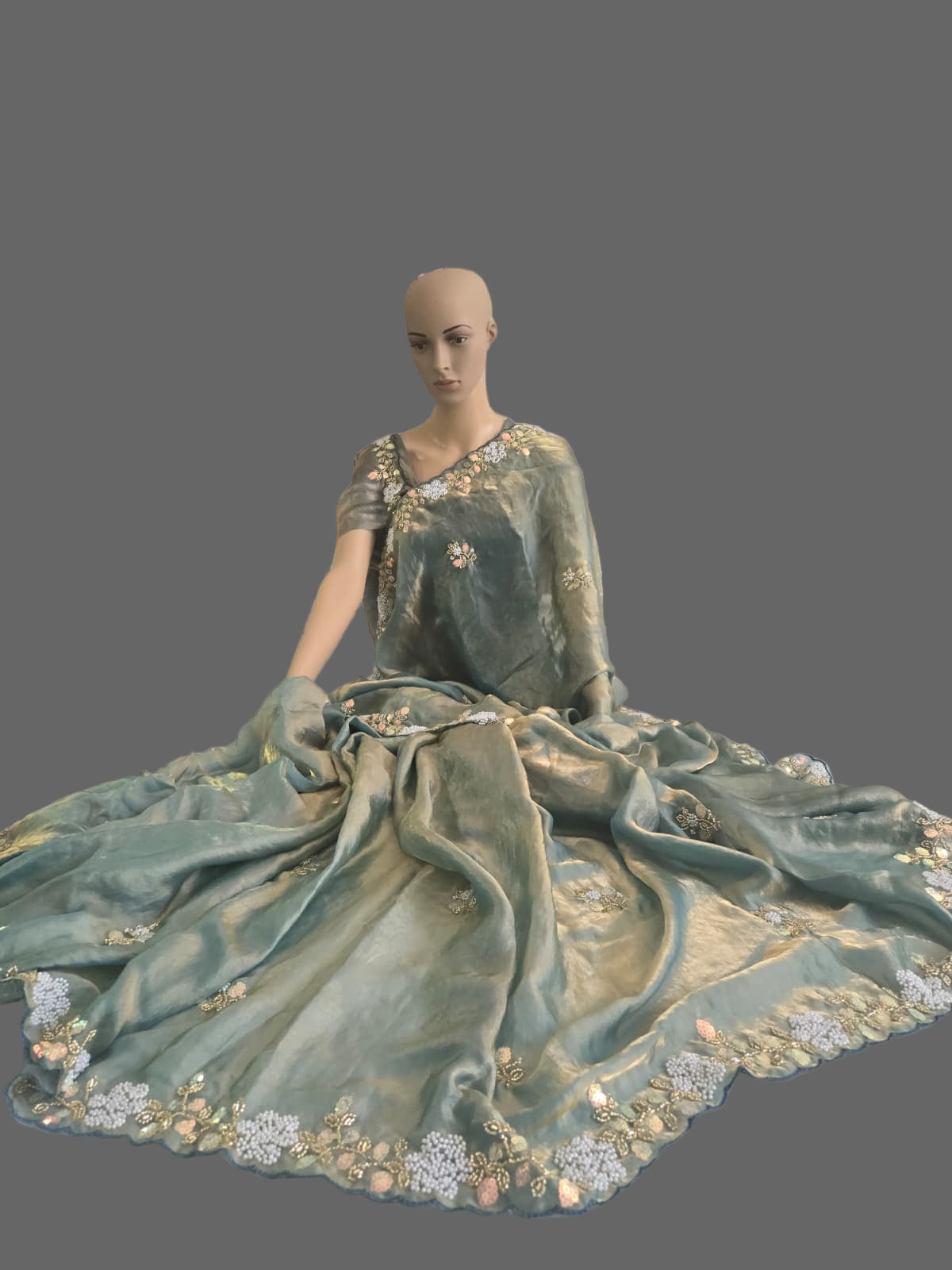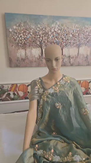 Premium Fancy Silk Saree with Sequin Brits Work & Arco Border Green– Buy from USA