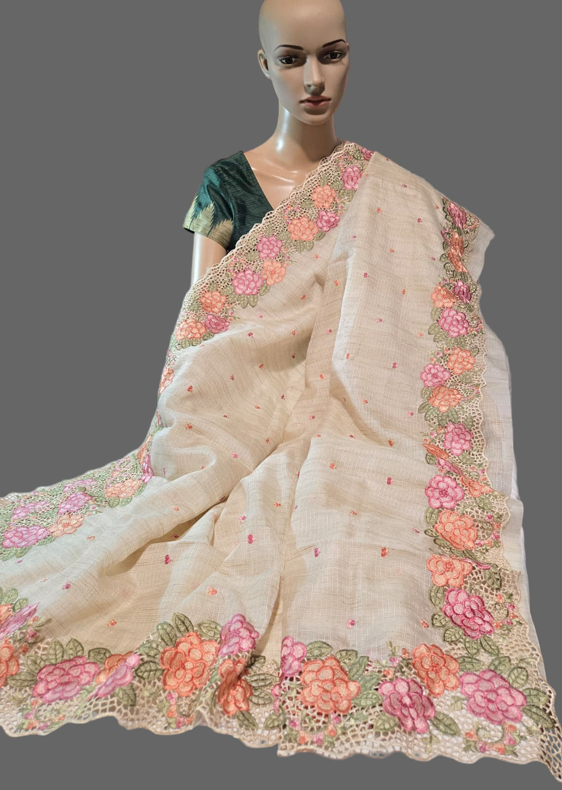 Kota Silk Saree with Embroidery and Cutwork Borders – Lightweight & Breathable