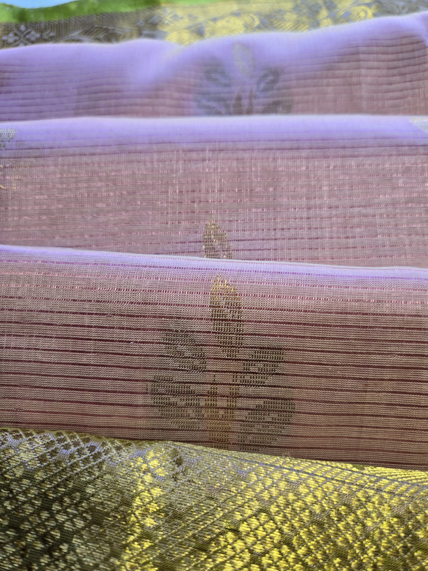 Discover pure handloom pattu sarees, beautifully crafted in a unique style with all-over small silver and gold zari woven buttas. Each saree features exquisite contrast borders, a luxurious Kanchi-style zari border, and a rich, royal zari-woven pallu. Paired with a matching contrast blouse adorned with elegant borders, these sarees offer timeless grace and traditional charm—perfect for weddings, festivals, and special occasions.