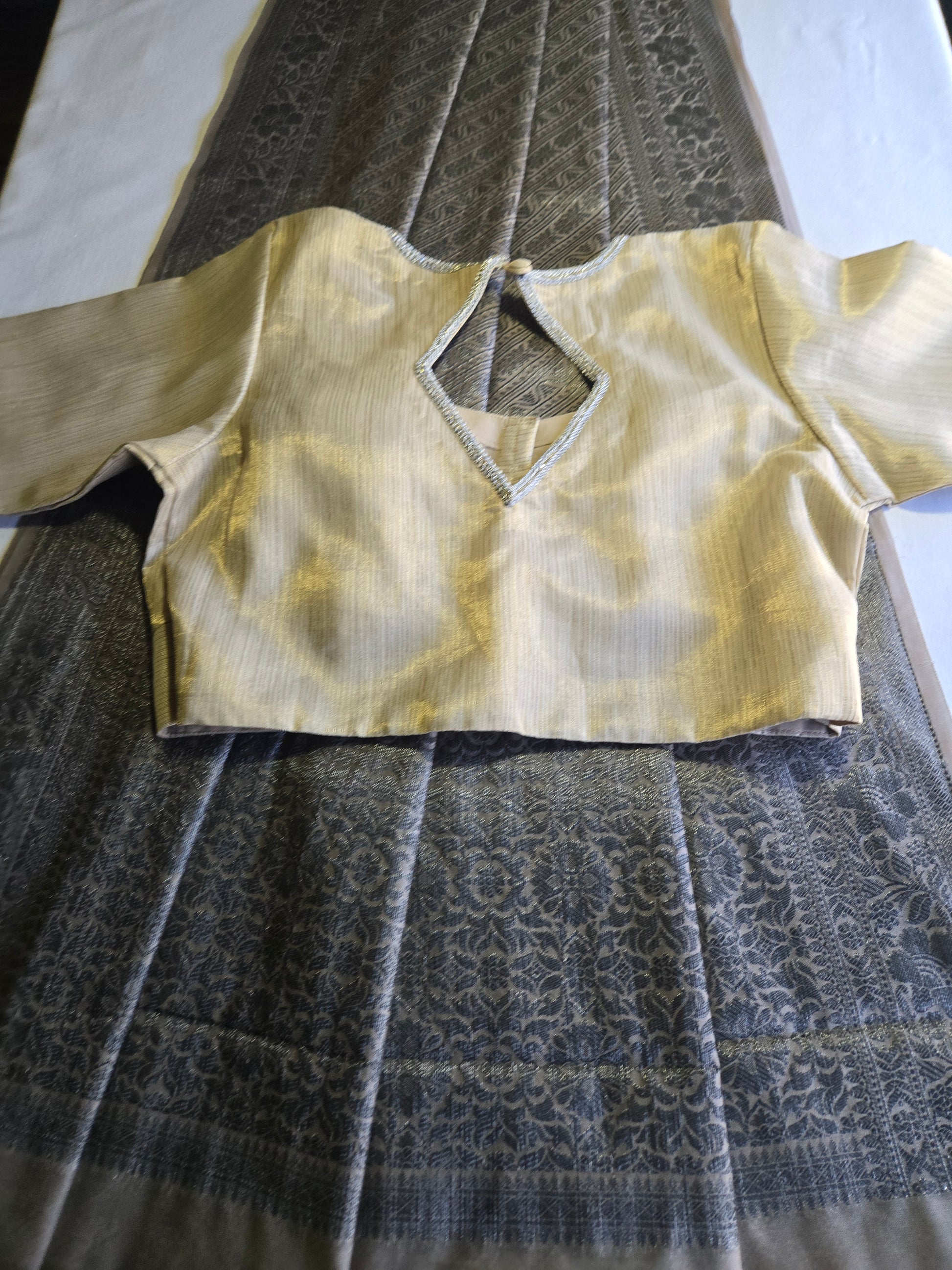 Blouse: Tissue Silk Stitched Blouse fits 38 to 44