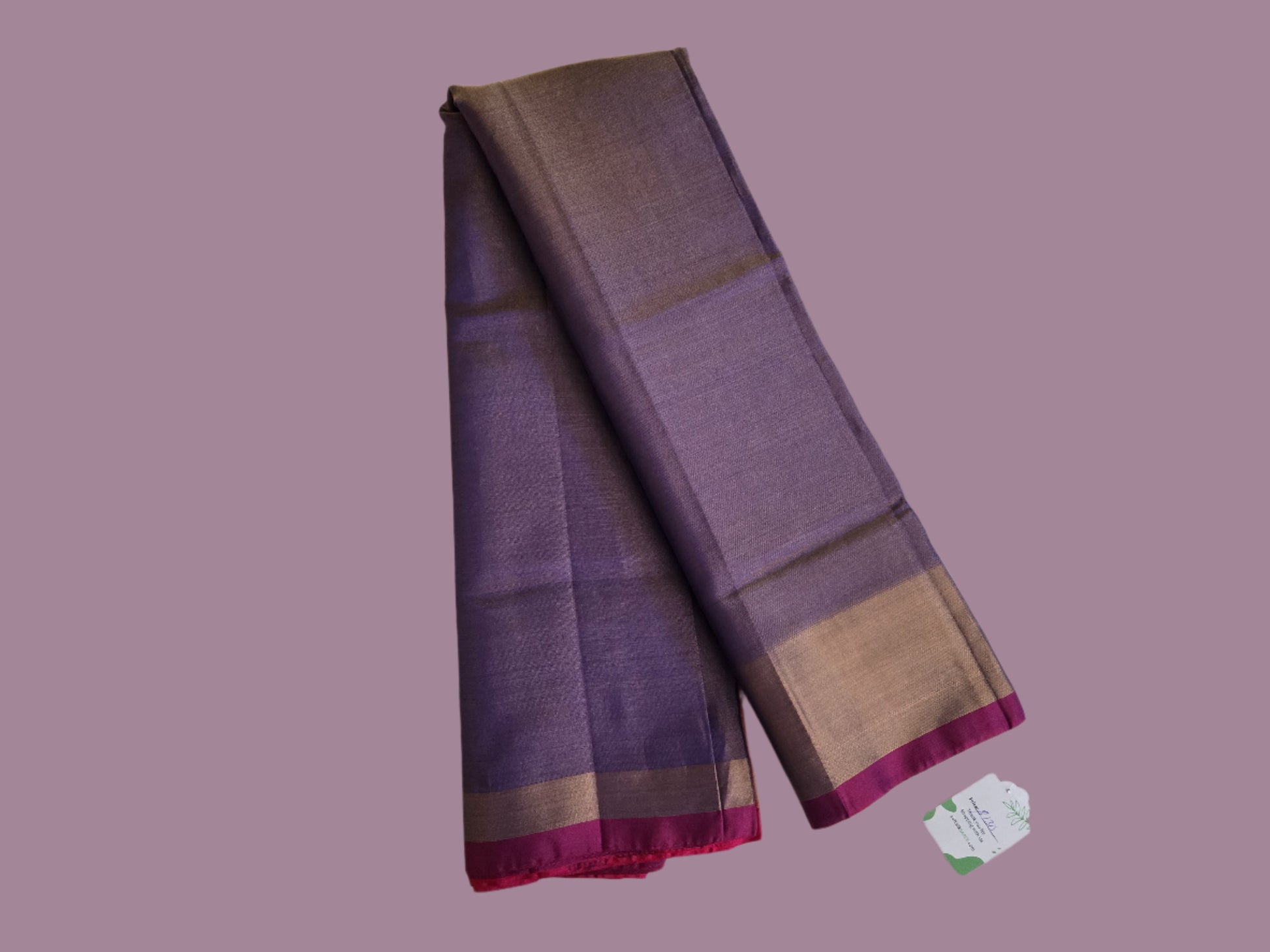 Pure Pattu Tissue Silk Saree with Contrast Pallu Design Purple & Orange