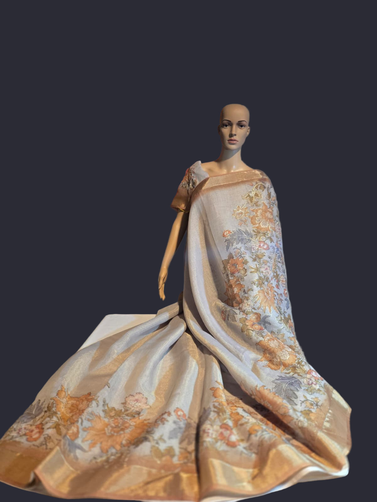 Exclusive Pure Tissue Silk Linen Hand Work Saree | Applique Work Embroidery Saree buy from USA| Party Wear USA