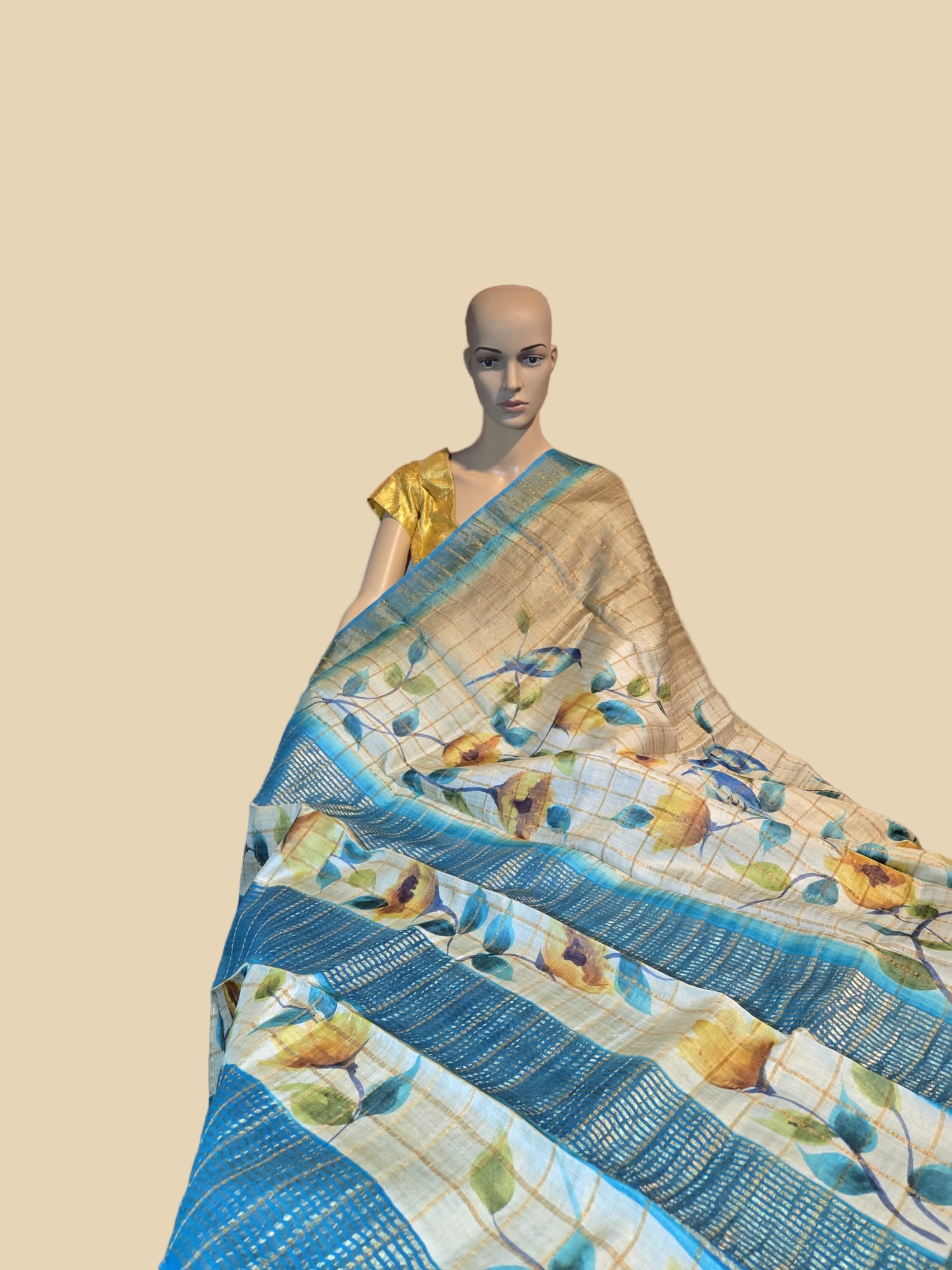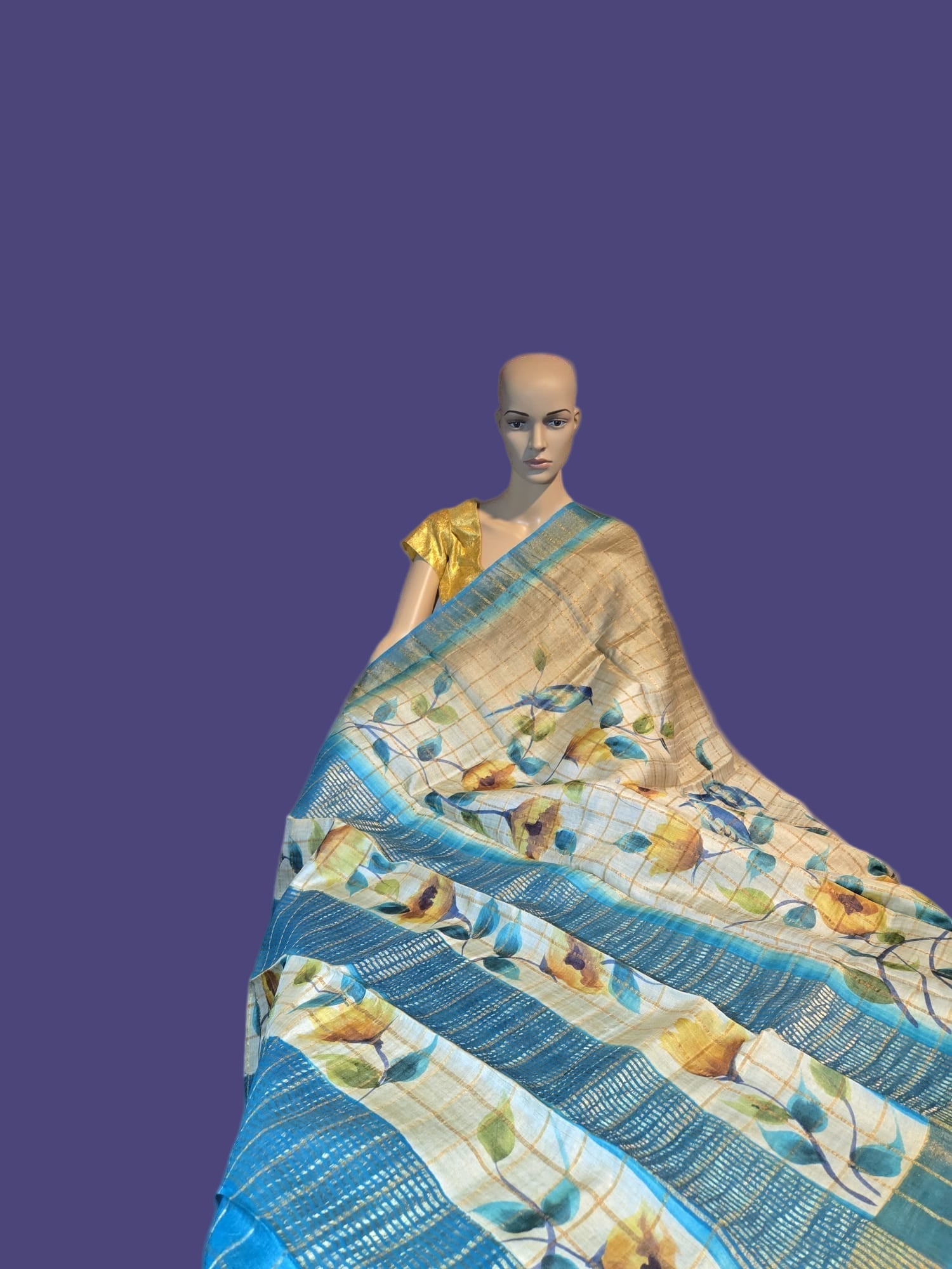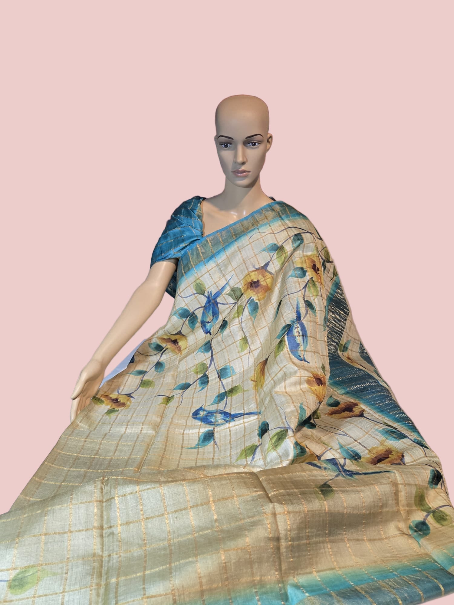 Fabric : Pure Gachi Tussar Handloom Silk Saree Hand Painted