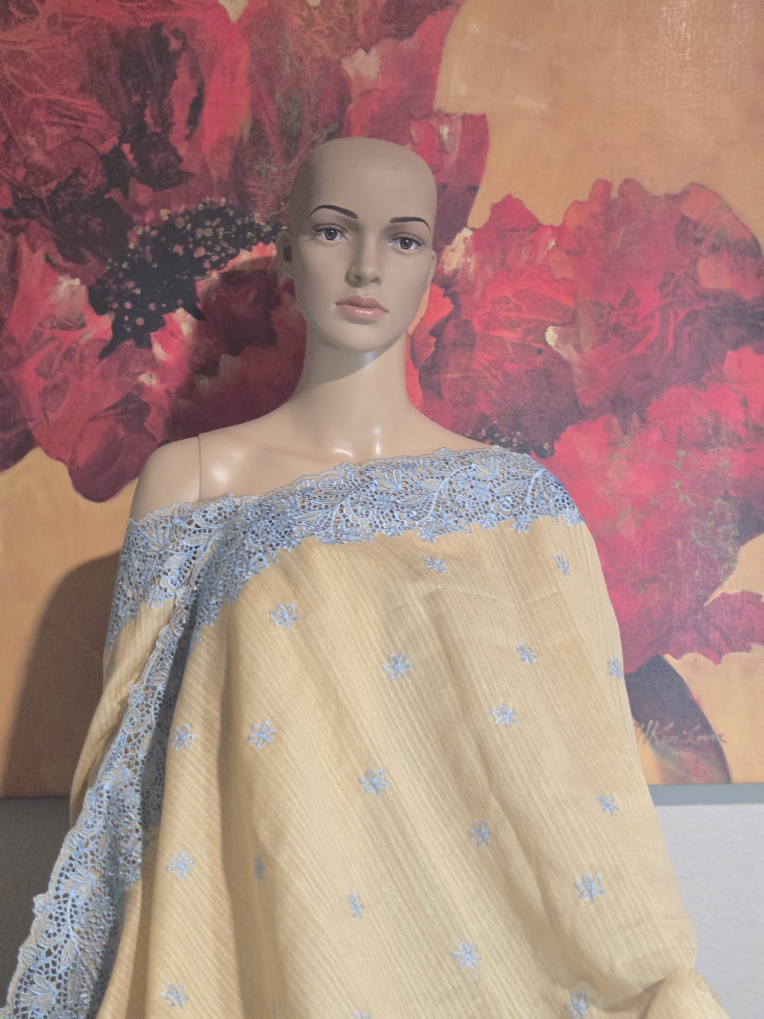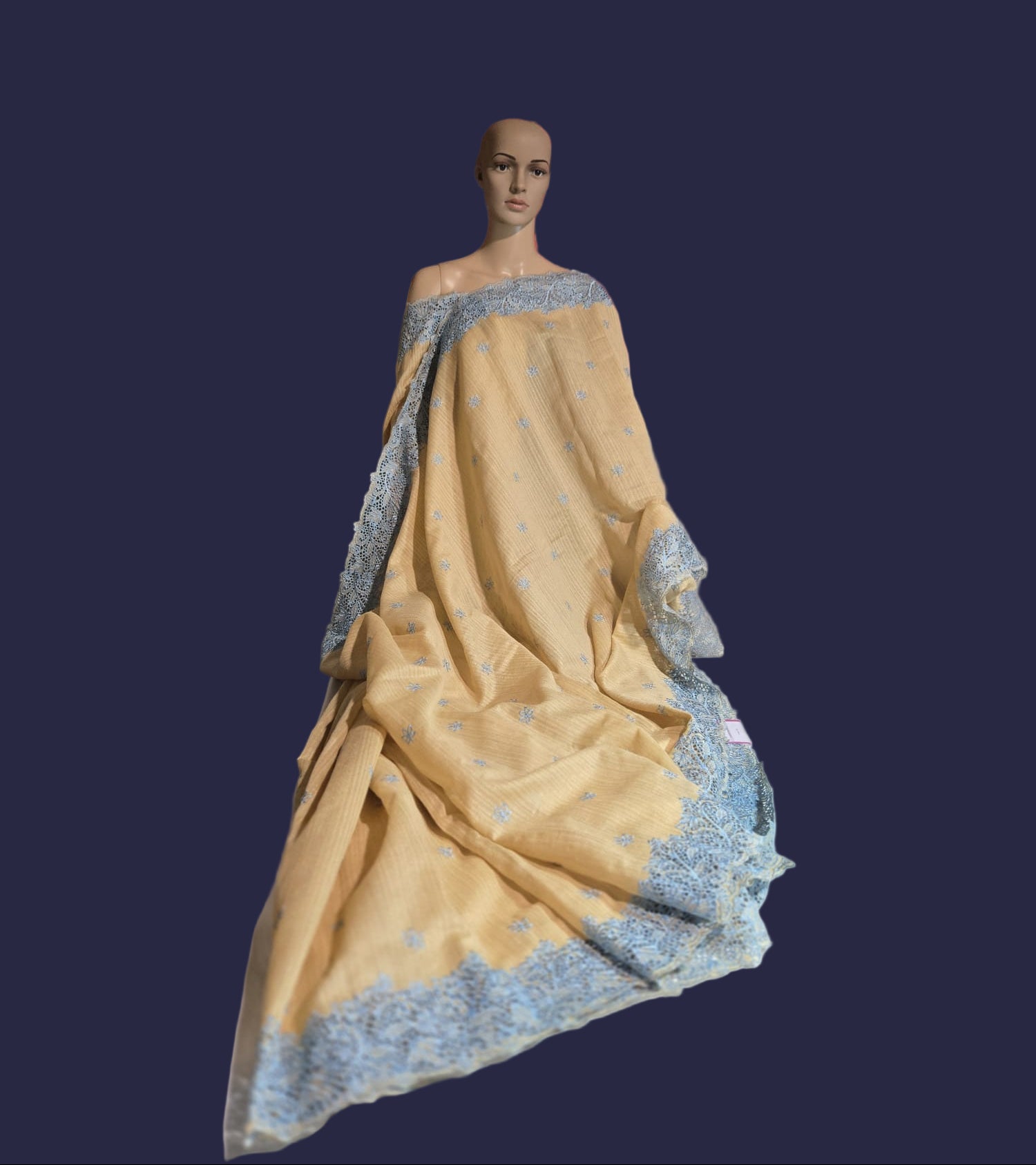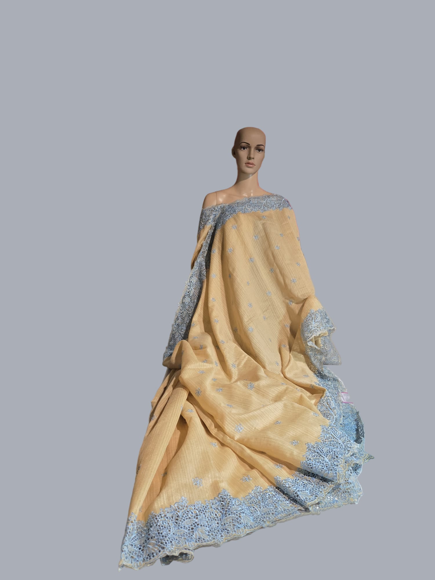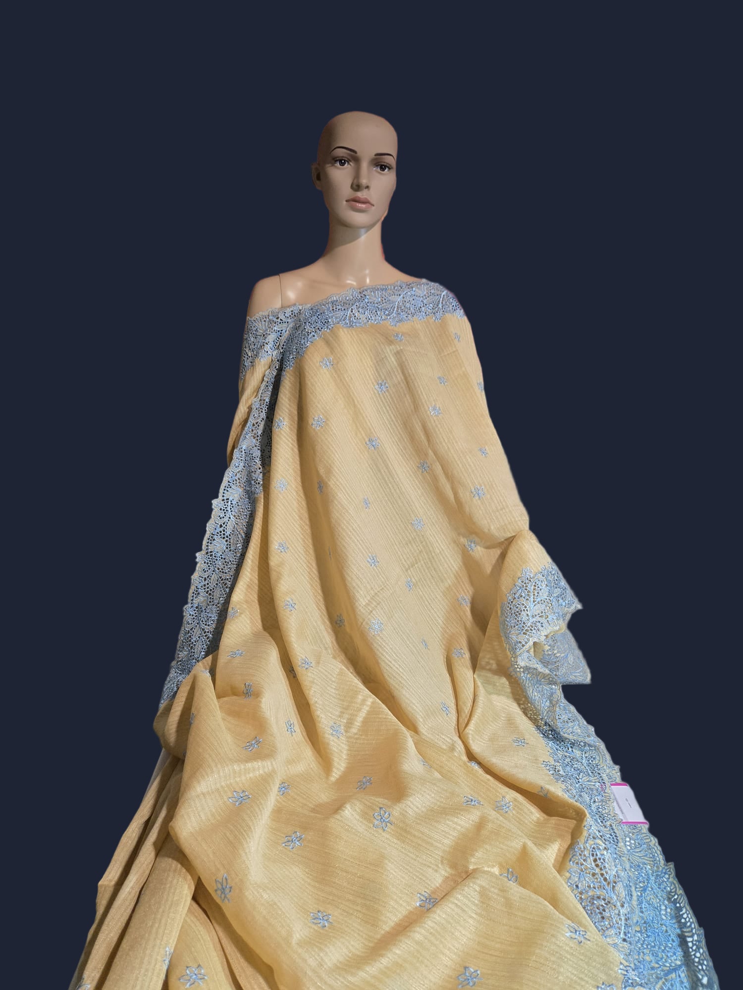 Ships from USA Exclusive Semi Jute Silk Saree with Cutwork Border and embroidery | Yellow Saree with blouse buy from USA