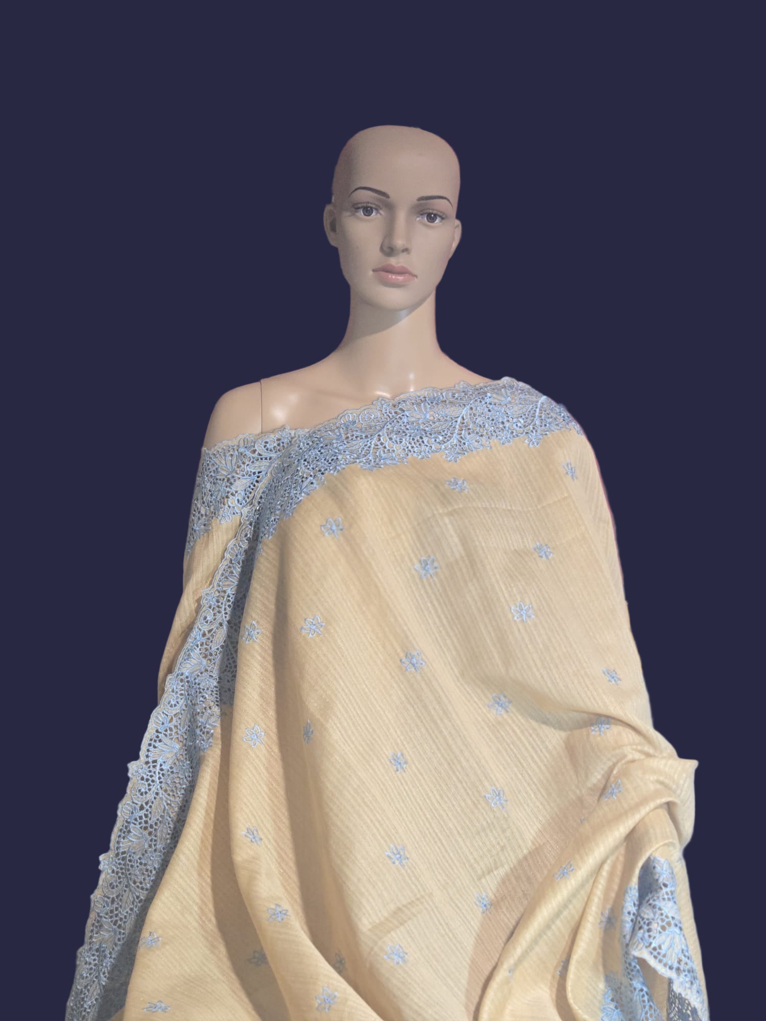 Elevate your everyday ethnic style with this Semi Jute Saree, featuring a graceful white cutwork border that adds a touch of refined elegance. Crafted with a soft and breathable semi jute fabric, this saree blends the rustic charm of jute with a comfortable, flowing drape.