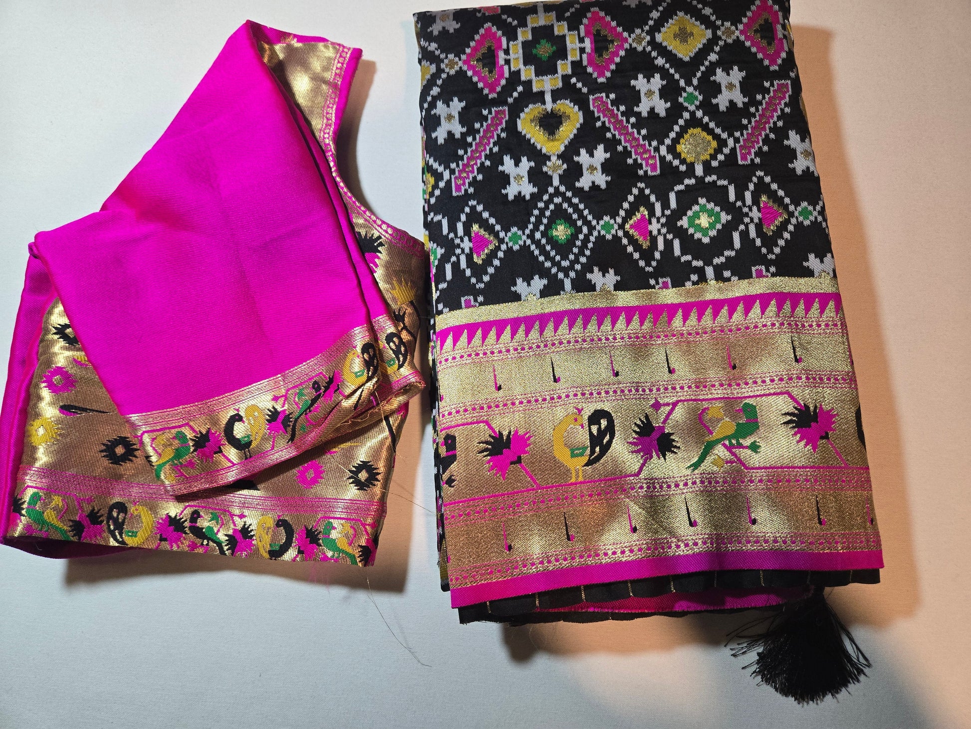 Kanchivaram Patola Paithani Silk Saree with Stitched Blouse Original Zari & Minakari Border