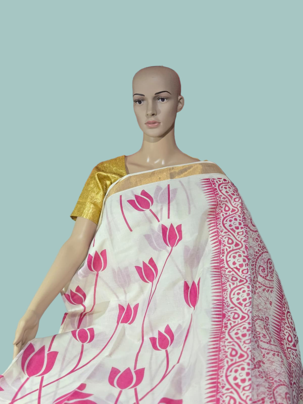 Traditional Indian Saree USA | Pure Cotton Sarees Buy from USA – Pure cotton saree with blouse | Lotus Print Saree